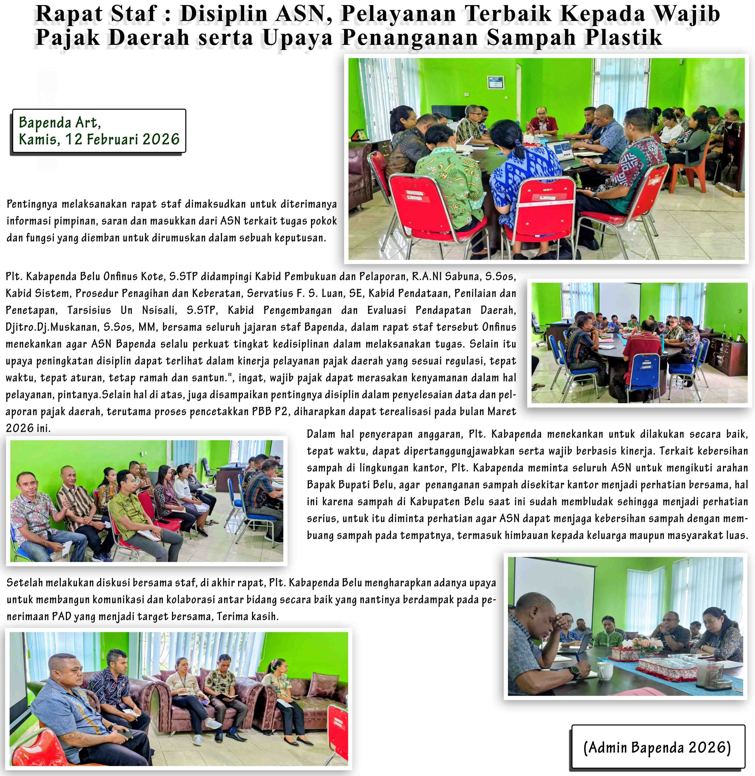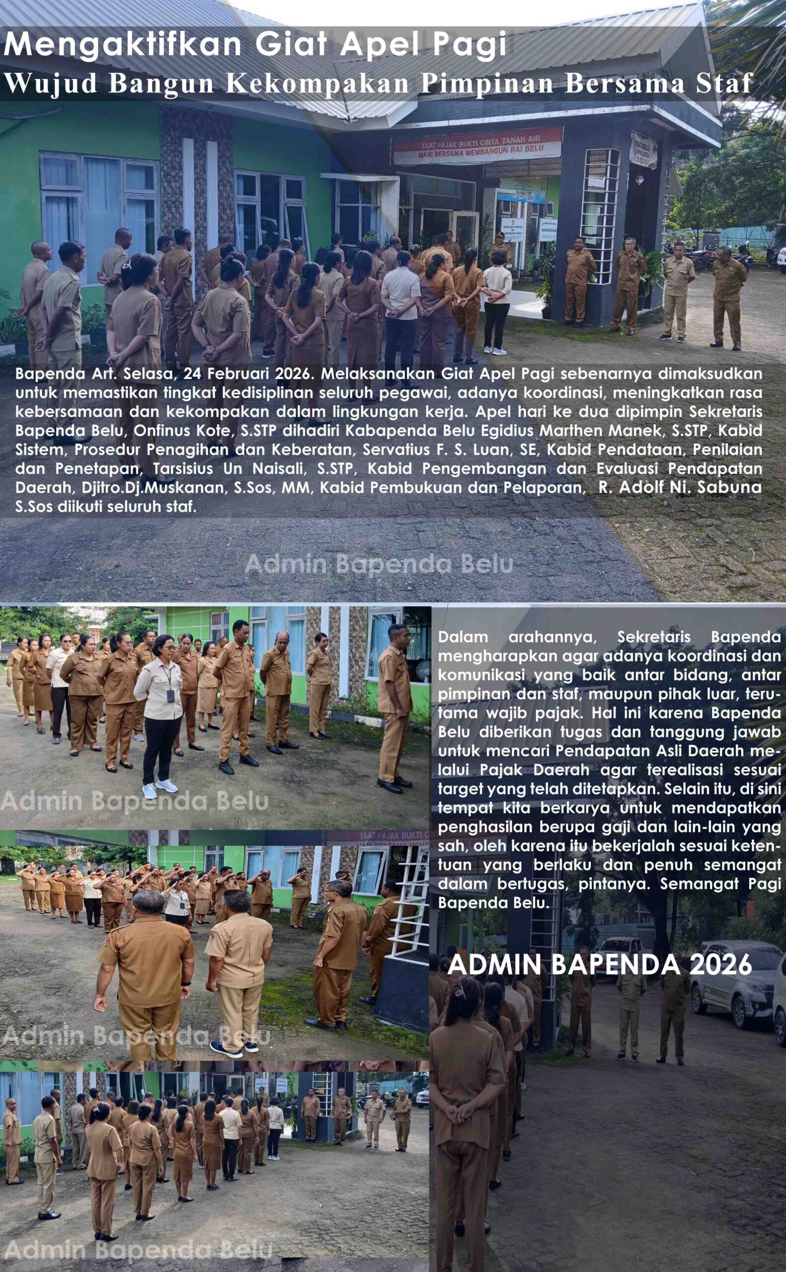 Bapenda Art, Untuk memotivasi dan memberikan apresiasi yang melampaui standar keunggulan dalam bekerja, nilai simbolis dan emosional pribadi dan lembaga sering menjadi kebanggaan tersendiri karena kualifikasi dan kredibilitas aparatur pengelolanya. Selamat atas prestasi yang diraih...terima kasih Bupati Belu, Bapak Willybrodus Lay, SH. Kepuasan dalam karier aparatur merupakan bukti pencapaian yg bernilai terbaik. Proficiat untuk, Bendahara Pengeluaran, PPK SKPD dan Perencana Bapenda Belu, (Admin Bapenda 2025).